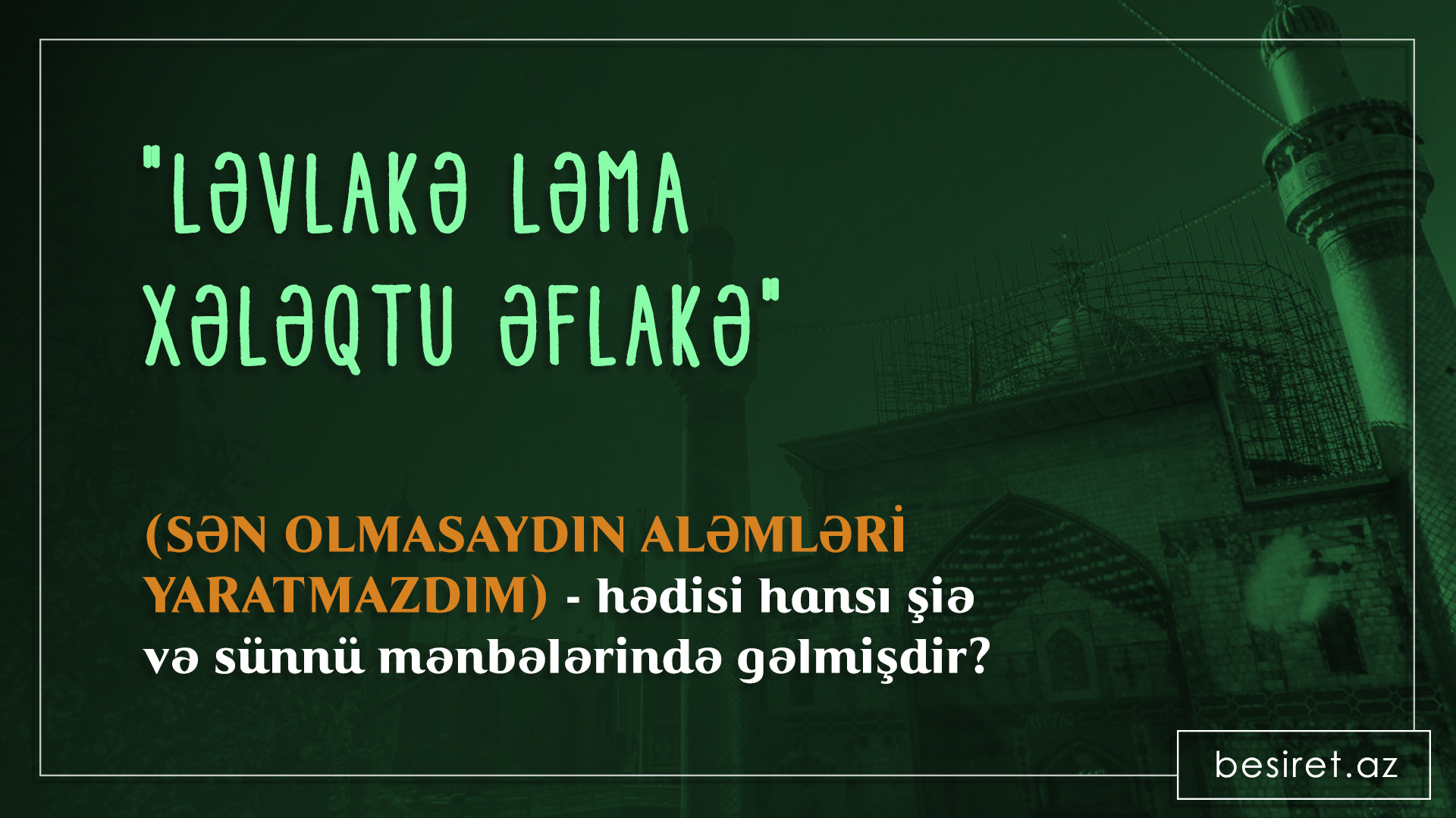 “…Necə ki, bu (mətləb) aşkardır: “Əgər sən olmasaydın, fələkləri yaratmazdım”.[10]