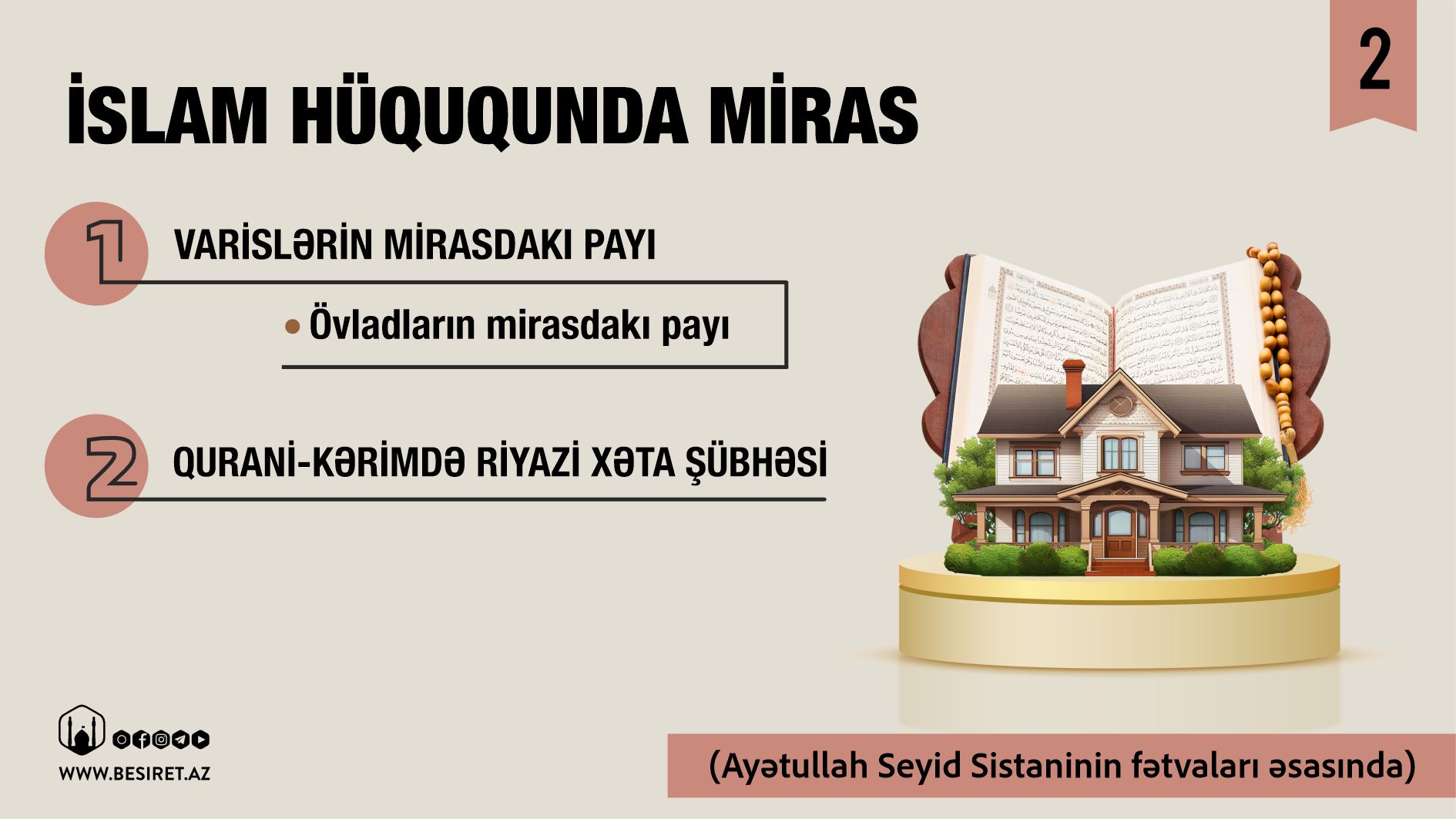 Məqalənin birinci hissəsində miras barədə bəzi ümumi məlumatlara, habelə ər-arvad və birinci təbəqədən sayılan ata-ananın mirası barədə əsas məsələlərə toxunduq. İkinci hissədə isə birinci təbəqədən olan digər şəxslərin mirasdakı payları barədə məlumat verəcək, sonda isə miras mövzusu haqqında ortaya atılmış bir şübhə və onun cavabını qeyd edəcəyik.